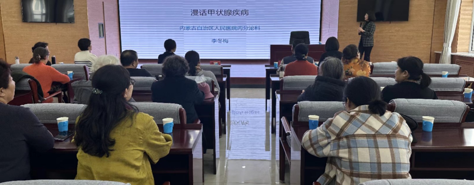 3月6日下午,内蒙古爱明医院组织医护专家走进自治区军队离退休干部服务中心军休大学乌兰察布东路教学点,邀请内蒙古自治区人民医院内分泌科主任,内蒙古爱明医院“李冬梅名医工作室”首席专家李冬梅教授,为女军休干部开展了《漫话甲状腺疾病》健康讲座,并与现场女军休干部积极互动,解疑释惑,现场气氛温馨融洽。讲座结束后,女医护专家与女军休干部还围绕“柔肩担重任,巾帼绽芳华”主题,共同庆祝“三八”国际妇女节。